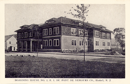 Photo: Unofficial.Net (12/2006).Postcard image (left) describing the "DuPont Club House" (about 1910), now part of Arrow Group Industries, Third Ave., Haskell. At it's height, about 1914, the DuPont plant employed thousands of men and women. Homes were built, and many were housed local hotels, barracks and women's dormitories. Some of the homes built can be seen on the Haskell pages.