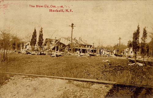Postcard image of the remains of one of a number of explosions at the plant. This one is dated October 31, 1911. Exact location of this structure is unknown.
