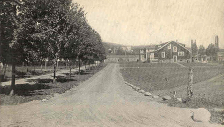 Photo: Unofficial.Net Collection.These postcard images describes the buildings as Boarding Houses No. 1 and No. 2. The Wanaque Jubilee booklet of 1968 describes this scene as the "Haskell DuPont Plant, 1917. Boarding House, Barns and Main Entrance Gate House. Location of Wanaque Bank" (Fourth and Ringwood Avenues). Boarding House No. 2 can be seen on the left side of the above Club House photo. The boarding houses are long gone.