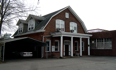 Photo: Unofficial.Net (1/2007).The postcard image on the left is the "Office of the DuPont Powder Works" (about 1910). The building exists today with the exterior mostly intact except for it's connection to the factory structure on the right. The court yard area is now paved and fenced in. This is now the Poly Molding Corp. on 4th Avenue.