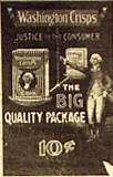 The above is an undated photo that identifies the gentleman as John Dondero. The screaming child is not identified. On the right is an enlargement of the poster found on the side of the station. It advertises "Washington Crisps", "Justice to the Consumer".