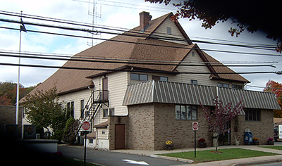 Another view of the Municipal Building. Note the small residence to the right. This structure had housed the Passaic County Board of Social Services "up-county" office through the 1970's. The building was torn down some years ago as the structure was in poor condition. The property remains vacant except for a garage building at the rear.
