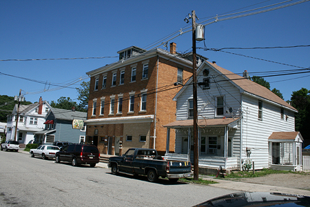 The same street in 2007 with the Columbia Hotel as it appears today in the left photo. The right photo shows the Schiaffino store that is now solely a residence. The brick building to it's left, that now houses Flip's Tavern was also built as a hotel..