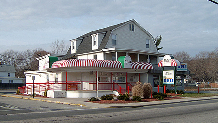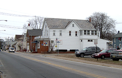These two postcard views of John Poole's Union House hotel. Poole's is directly across from the Empire Hotel, on the northwest corner of Ringwood and Furnace. The photo on the right is dated at about 1910. Below, the building's current configuration as a Rita's ice cream store and deli on the lower level and apartments on the upper floors. After having existed as the Union House, the lower floor business was also a tavern that went under various names and was also as a go-go bar for a short period. For some time the bar competed with the America House that was located in the building to the right, now a vacant lot.